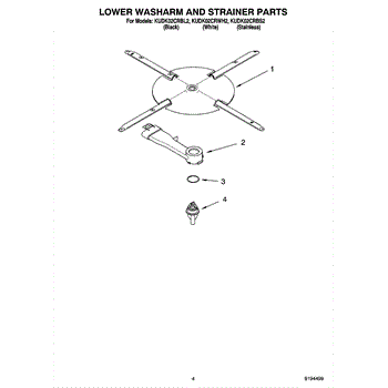 Parts for Kitchenaid KUDK02CRBL2: 04 - Lower Washarm And Strainer Parts