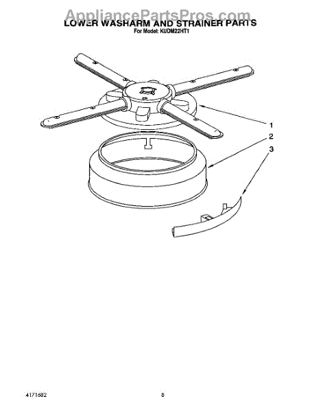 Parts for Kitchenaid KUDM22HT1: 06 - Lower Washarm And Strainer Parts