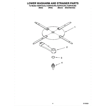 Parts for Kitchenaid KUDP01DLWH3: 04 - Lower Washarm And Strainer Parts