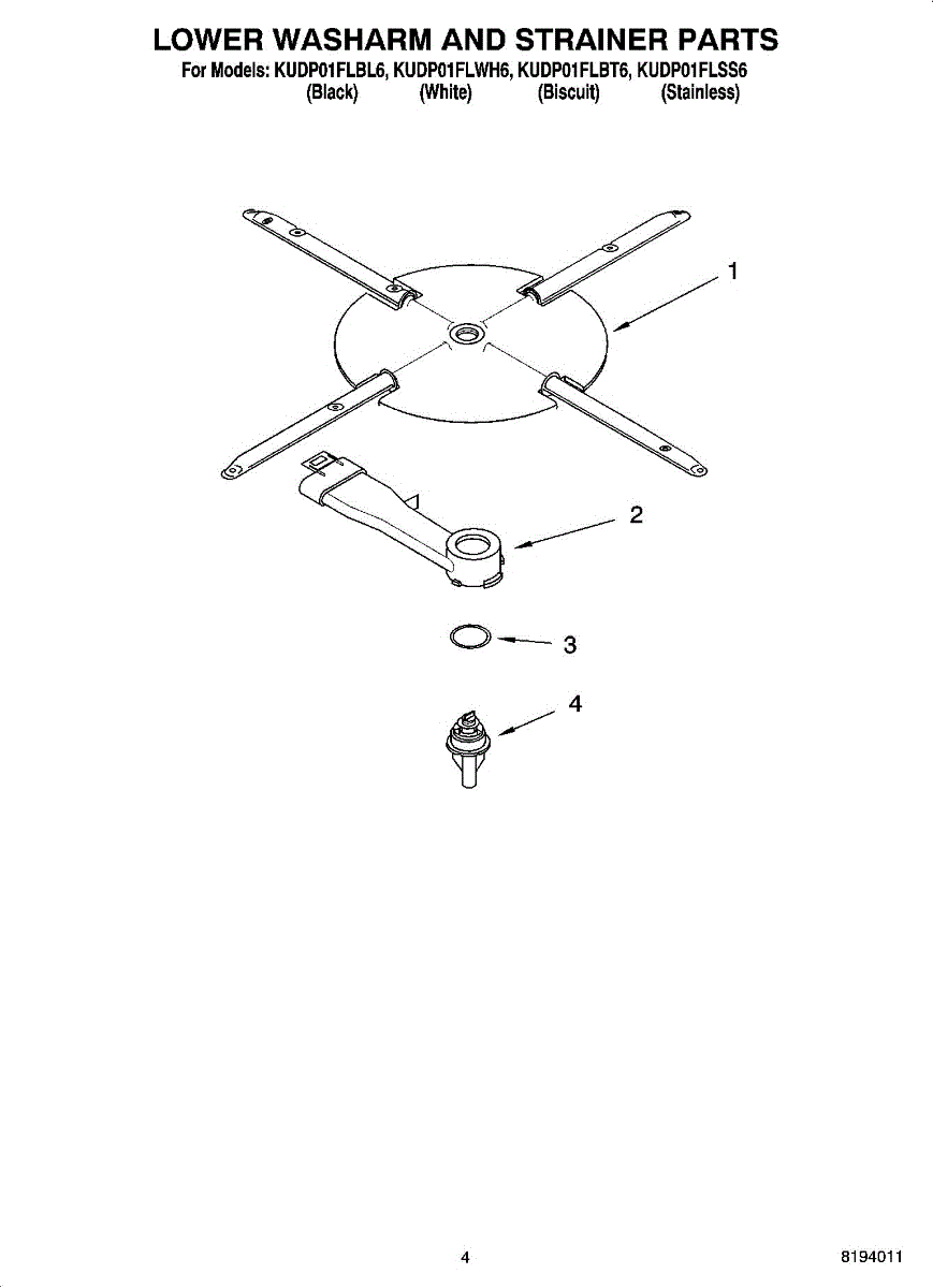 Parts for Kitchenaid KUDP01FLBT6: 04 - Lower Washarm And Strainer Parts