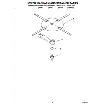 Parts for Kitchenaid KUDP02CRBT0: 04 - Lower Washarm And Strainer Parts