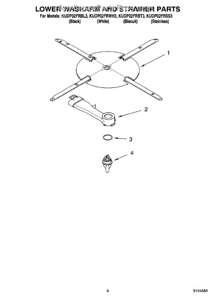 Parts for Kitchenaid KUDP02FRWH3: 04 - Lower Washarm And Strainer Parts