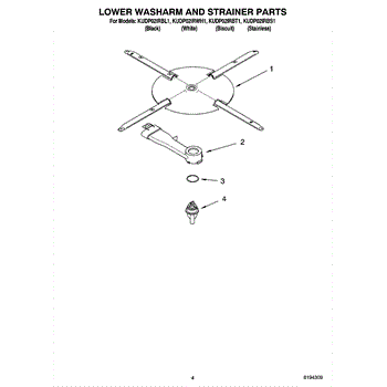 Parts for Kitchenaid KUDP02IRWH1: 04 - Lower Washarm And Strainer Parts