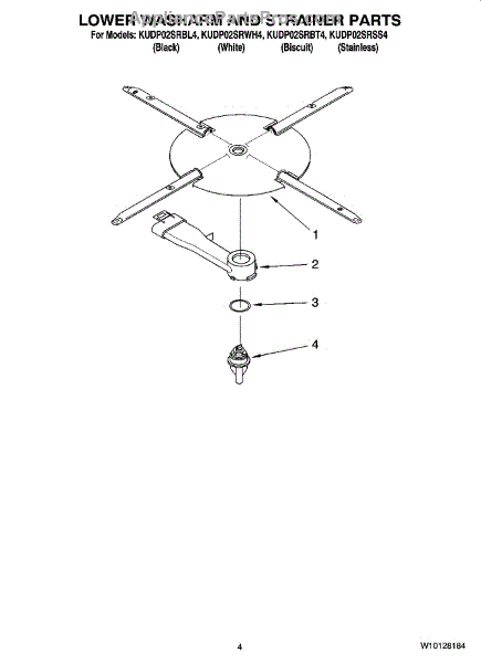 Parts for Kitchenaid KUDP02SRBT4: 04 - Lower Washarm And Strainer Parts