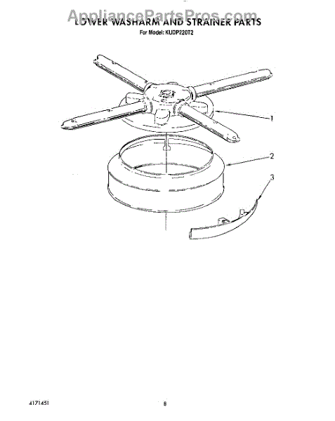 Parts for Kitchenaid KUDP220T2: 06 - Lower Washarm And Strainer Parts