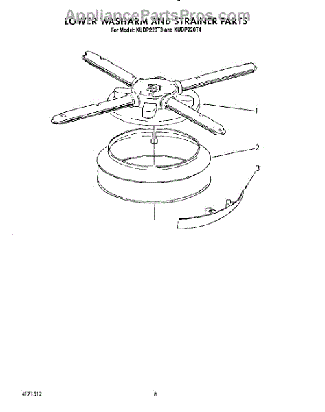 Parts for Kitchenaid KUDP220T4: 06 - Lower Washarm And Strainer Parts