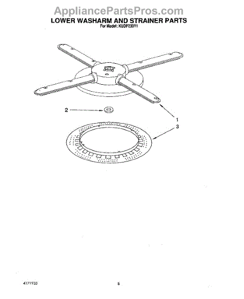 Parts for Kitchenaid KUDP230Y1: 05 - Lower Washarm And Strainer Parts