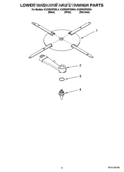 Parts for Kitchenaid KUDR02FSBL4: 04 - Lower Washarm And Strainer Parts