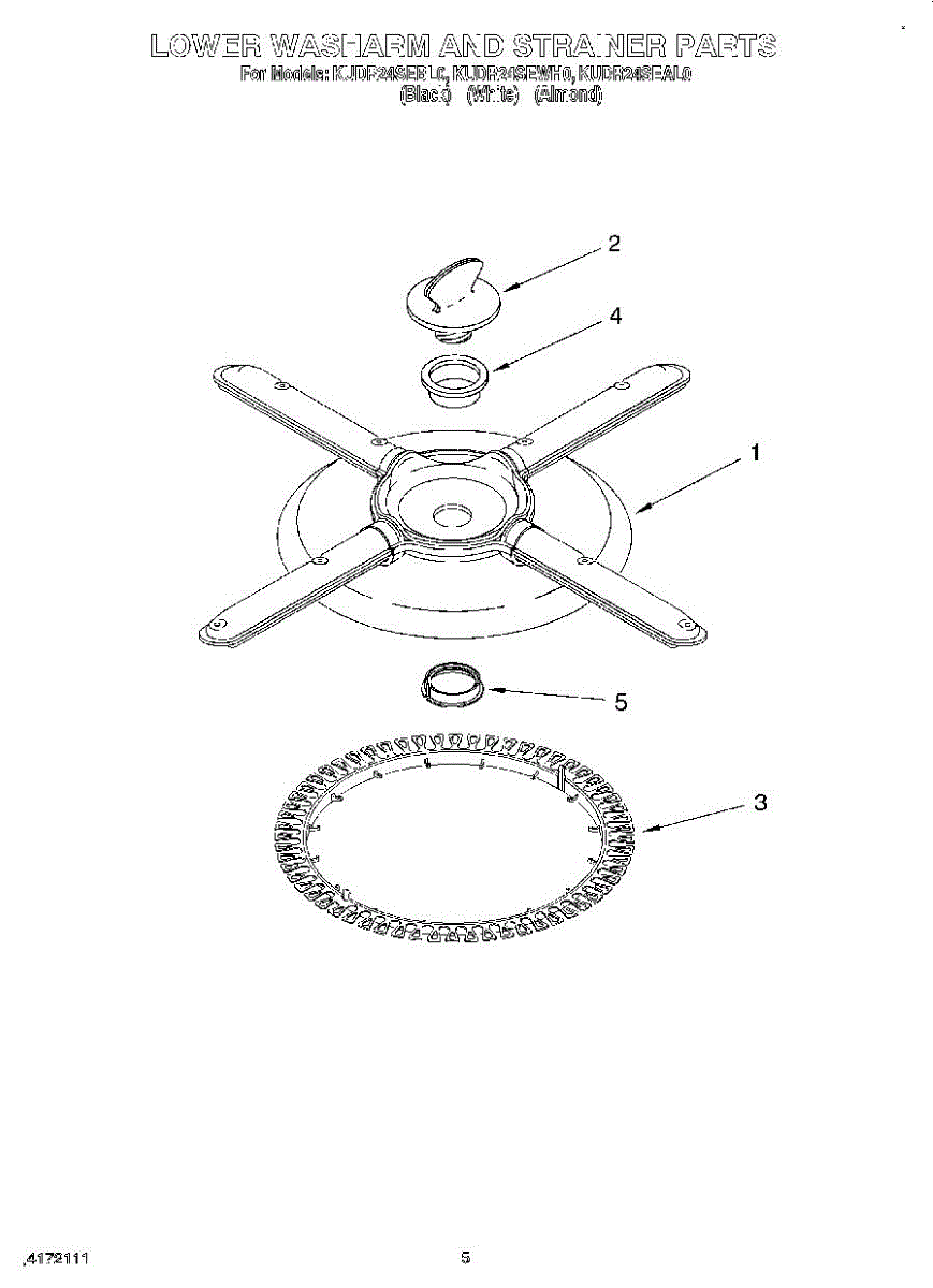 Parts for Kitchenaid KUDR24SEWH0: 04 - Lower Washarm And Strainer Parts