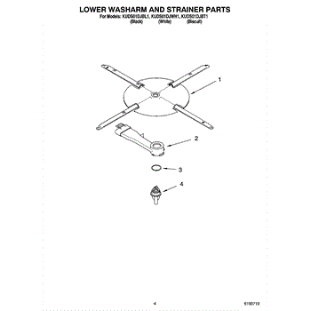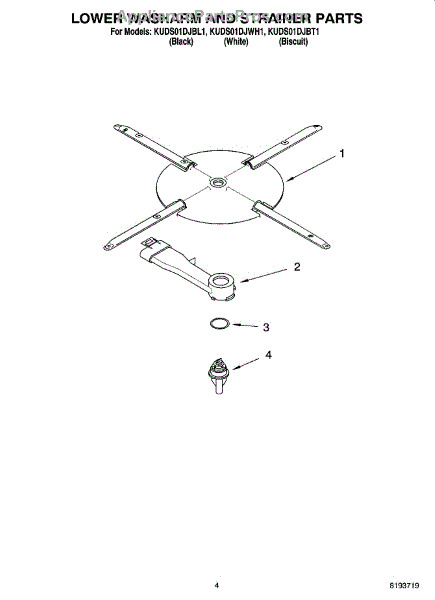 Parts for Kitchenaid KUDS01DJBT1: 04 - Lower Washarm And Strainer Parts