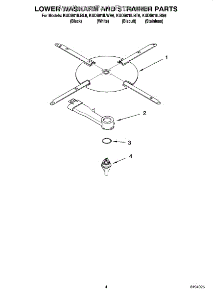 Parts for Kitchenaid KUDS01ILBT6: 04 - Lower Washarm And Strainer Parts