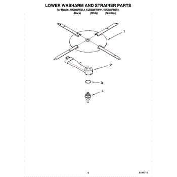 Parts for Kitchenaid KUDS02FRWH1: 04 - Lower Washarm And Strainer Parts