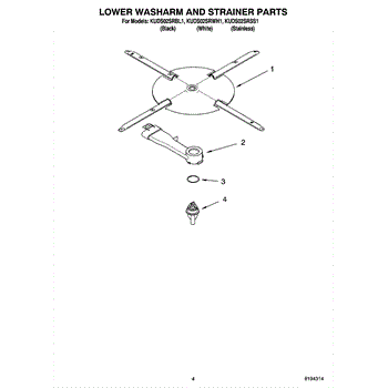 Parts for Kitchenaid KUDS02SRWH1: 04 - Lower Washarm And Strainer Parts