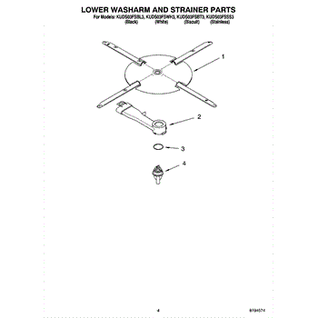 Parts for Kitchenaid KUDS03FSBL3: 04 - Lower Washarm And Strainer Parts