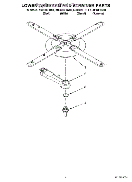 Parts for Kitchenaid KUDS03FTWH0: 04 - Lower Washarm And Strainer Parts