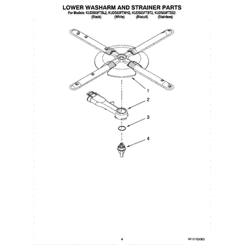 Parts for Kitchenaid KUDS03FTWH2: 04 - Lower Washarm And Strainer Parts