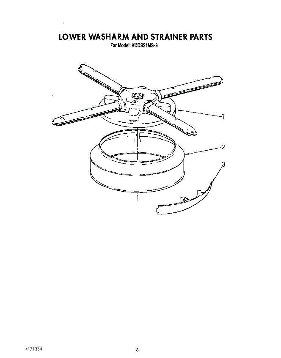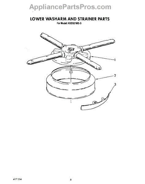 Parts for Kitchenaid KUDS21MS3: 06 - Lower Washarm And Strainer Parts
