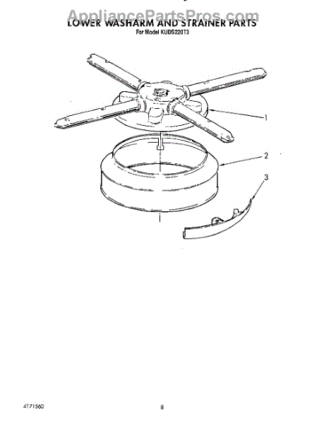 Parts for Kitchenaid KUDS220T3: 06 - Lower Washarm And Strainer Parts