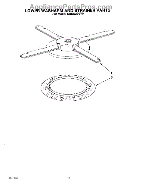 Parts for Kitchenaid KUDS230Y0: 06 - Lower Washarm And Strainer Parts