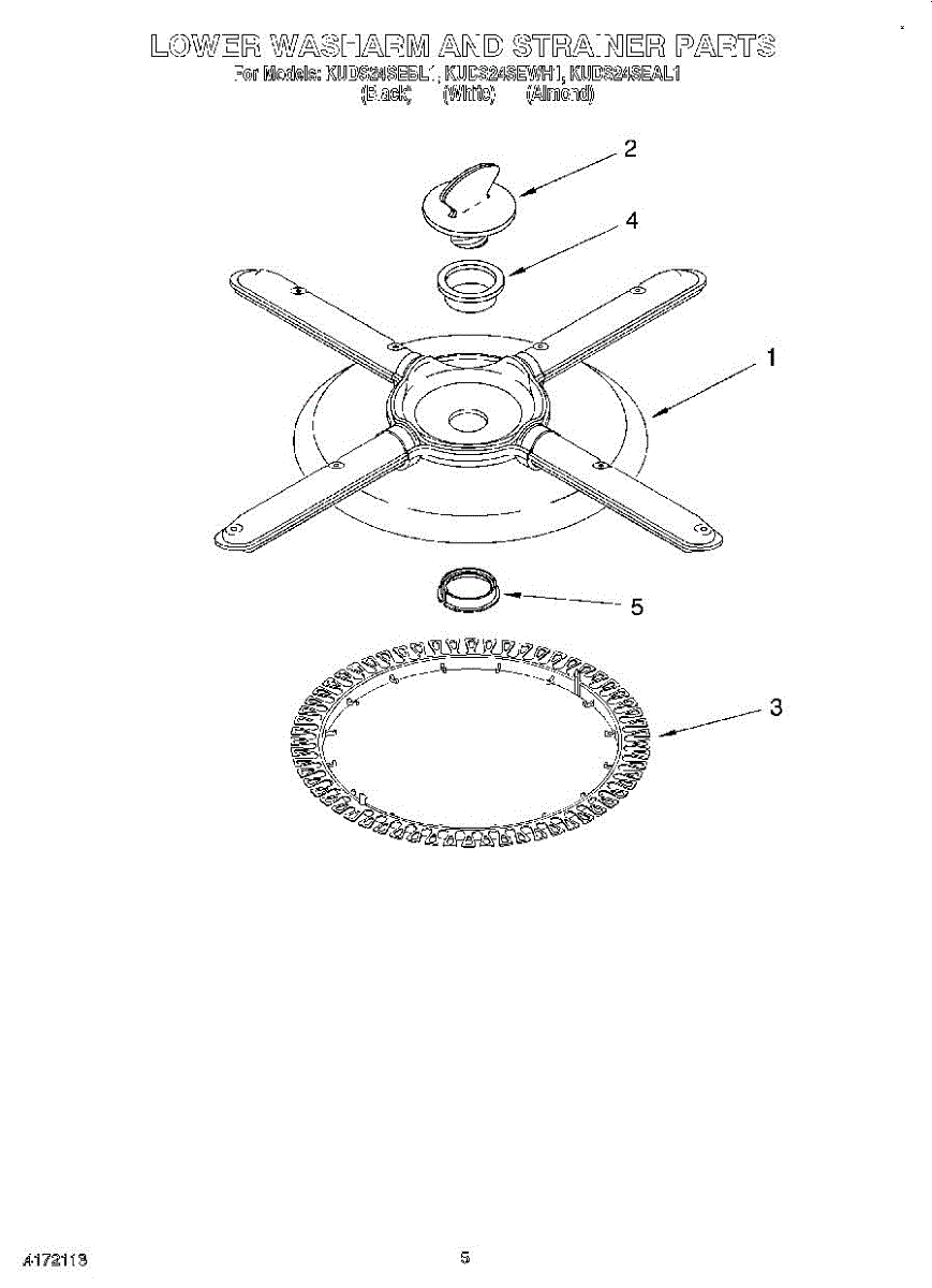 Parts for Kitchenaid KUDS24SEAL1: 04 - Lower Washarm And Strainer Parts