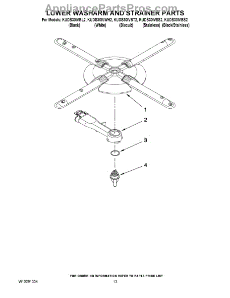 Parts for Kitchenaid KUDS30IVBT2: 11 - Lower Washarm And Strainer Parts