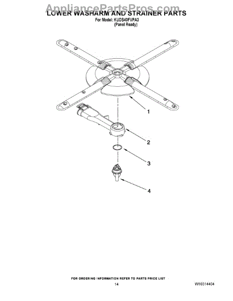 Parts for Kitchenaid KUDS40FVPA3: 11 - Lower Washarm And Strainer Parts