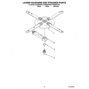 Parts for Kitchenaid KUDS50FVSS0: 11 - Lower Washarm And Strainer Parts