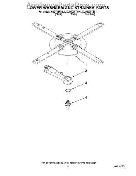 Parts for Kitchenaid KUDT03FTSS1: 04 - Lower Washarm And Strainer Parts