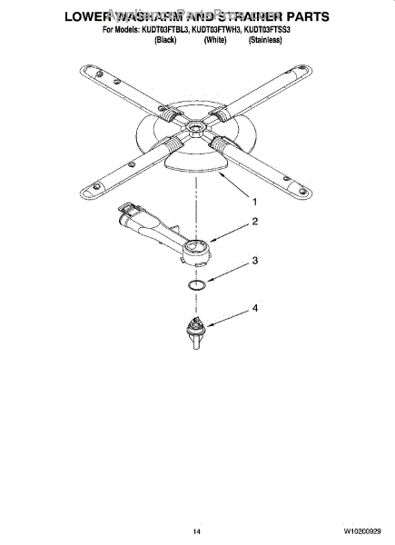 Parts for Kitchenaid KUDT03FTWH3: 11 - Lower Washarm And Strainer Parts