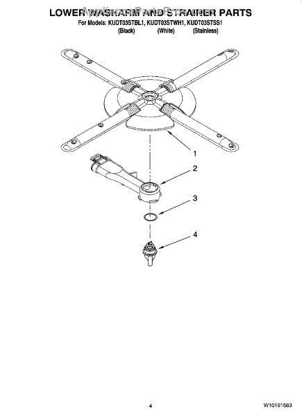 Parts for Kitchenaid KUDT03STWH1: 04 - Lower Washarm And Strainer Parts
