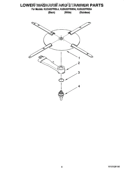 Parts for Kitchenaid KUDU02FRWH4: 04 - Lower Washarm And Strainer Parts