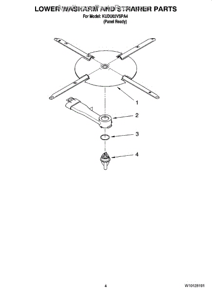 Parts for Kitchenaid KUDU02VSPA4: 04 - Lower Washarm And Strainer Parts
