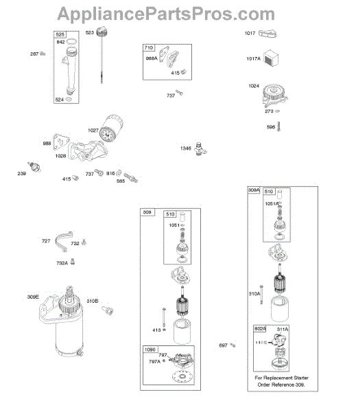 Parts for Briggs & Stratton 305777-0117-E1: Lubrication, Oil Fill, Electric Starter Parts