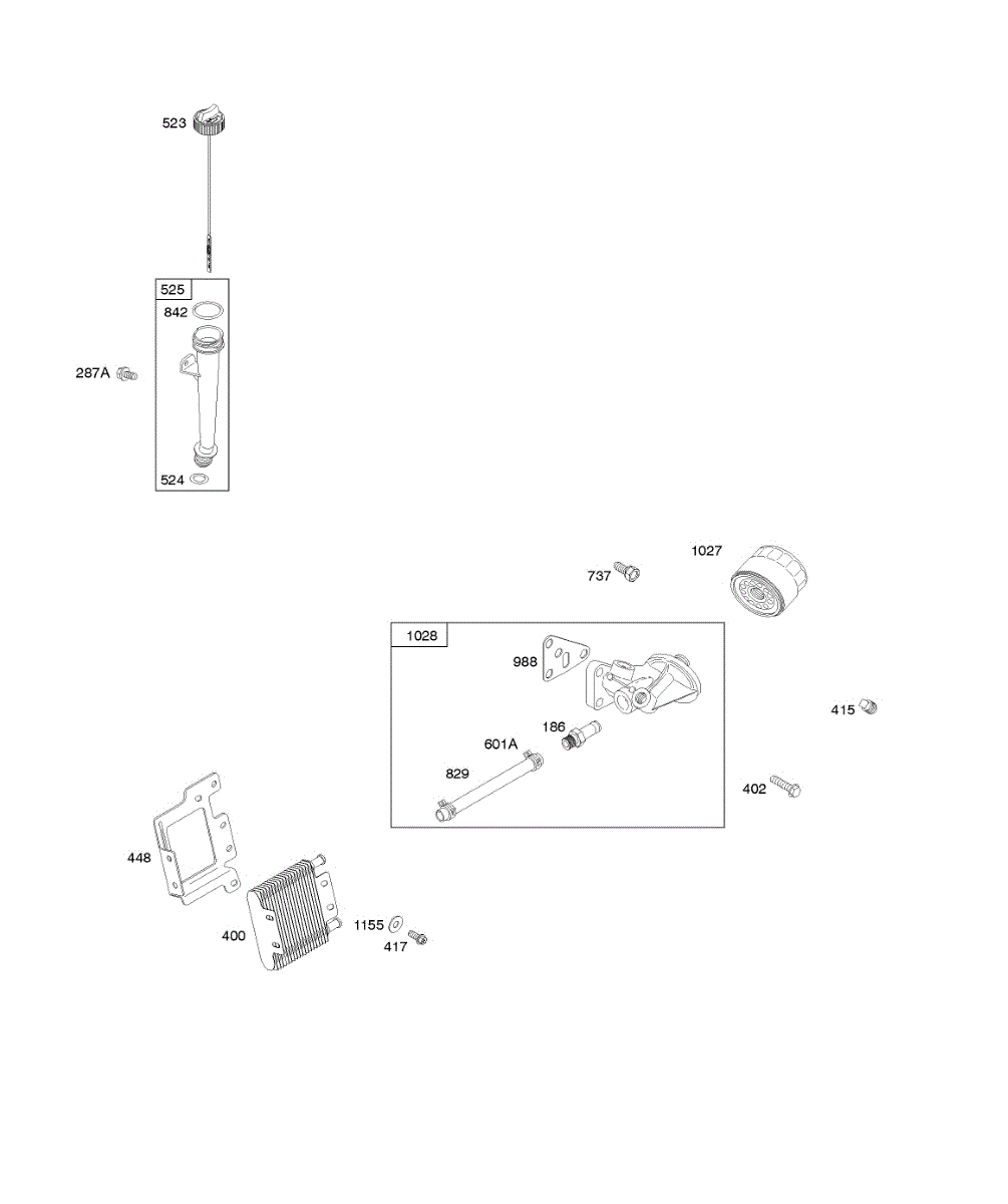 Parts for Briggs & Stratton 385877-0001-B1: Lubrication System, Oil Fill Parts