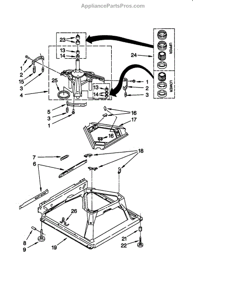 Secures suspension springs to the washer tub assembly. Replace if cracked, worn, or missing to prevent tub instability during wash and spin cycles.