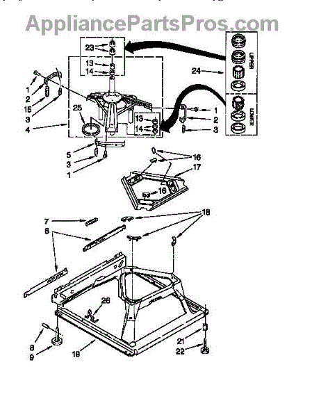 Secures suspension springs to the washer tub assembly. Replace if cracked, worn, or missing to prevent tub instability during wash and spin cycles.
