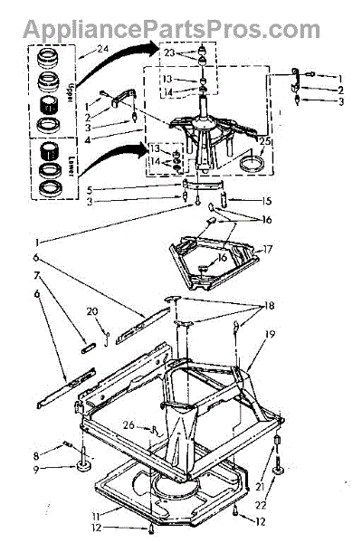 Base for washers. Supports the entire washer assembly and houses internal components. Replace if cracked, warped, or damaged from drops or impacts.