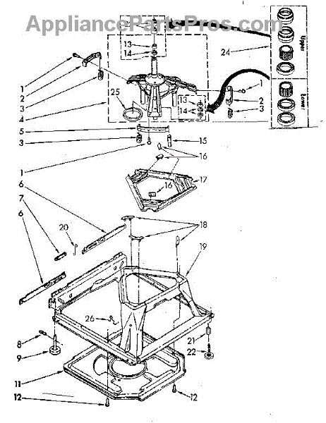 Base for washers. Supports the entire washer assembly and houses internal components. Replace if cracked, warped, or damaged from drops or impacts.