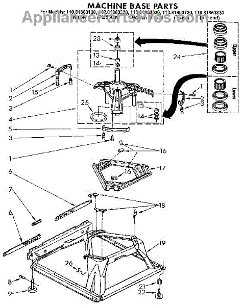 Base for washers. Supports the entire washer assembly and houses internal components. Replace if cracked, warped, or damaged from drops or impacts.