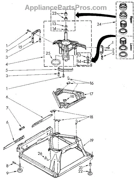 Base for washers. Supports the entire washer assembly and houses internal components. Replace if cracked, warped, or damaged from drops or impacts.