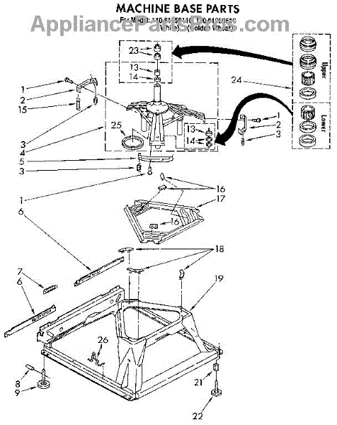 Base for washers. Supports the entire washer assembly and houses internal components. Replace if cracked, warped, or damaged from drops or impacts.