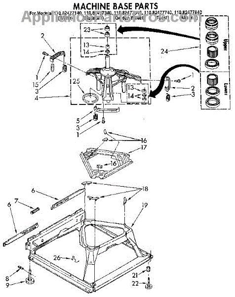 Parts for Kenmore 110.82477640 (11082477640, 110 82477640): Machine Base Parts