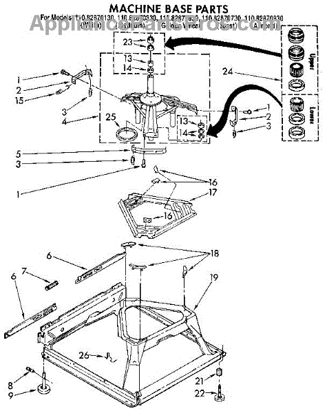 Parts for Kenmore 110.82870830 (11082870830, 110 82870830): Machine Base Parts
