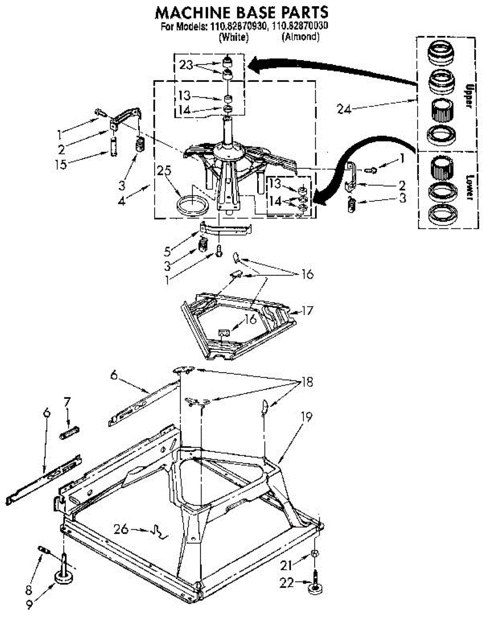 Parts for Kenmore 110.82870930 (11082870930, 110 82870930): Machine Base Parts