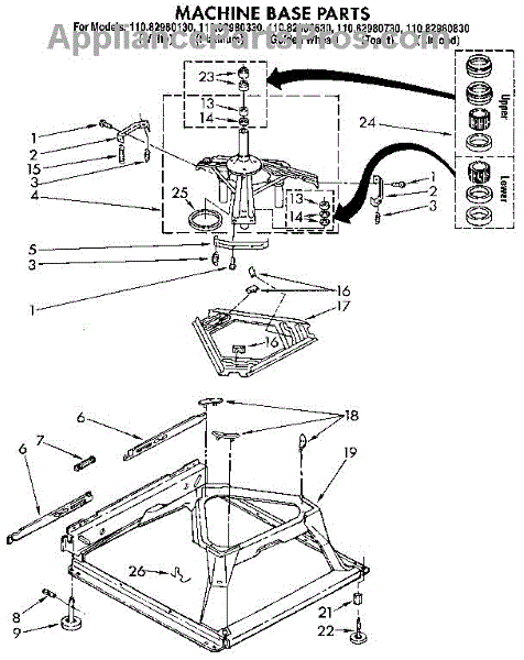 Parts for Kenmore 110.82980730 (11082980730, 110 82980730): Machine Base Parts