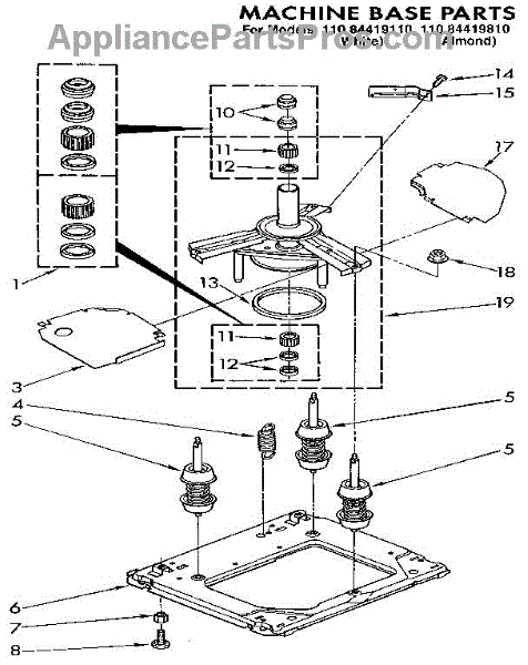 Welded base assembly forms the lower chassis of your washer. Replace if bent, rusted, cracked, or damaged to restore structural support and alignment.