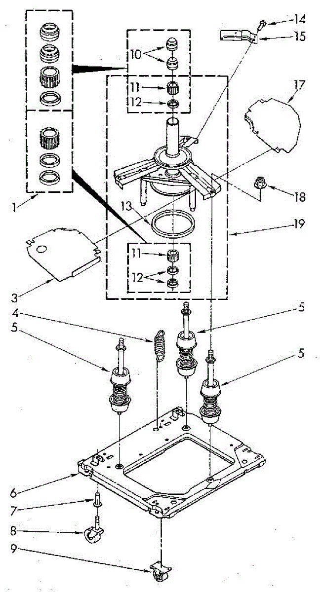 Welded base assembly forms the lower chassis of your washer. Replace if bent, rusted, cracked, or damaged to restore structural support and alignment.