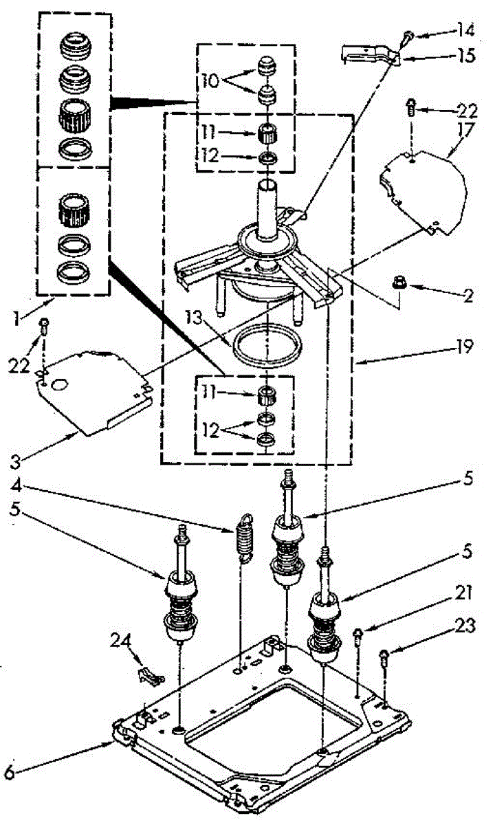 Welded base assembly forms the lower chassis of your washer. Replace if bent, rusted, cracked, or damaged to restore structural support and alignment.
