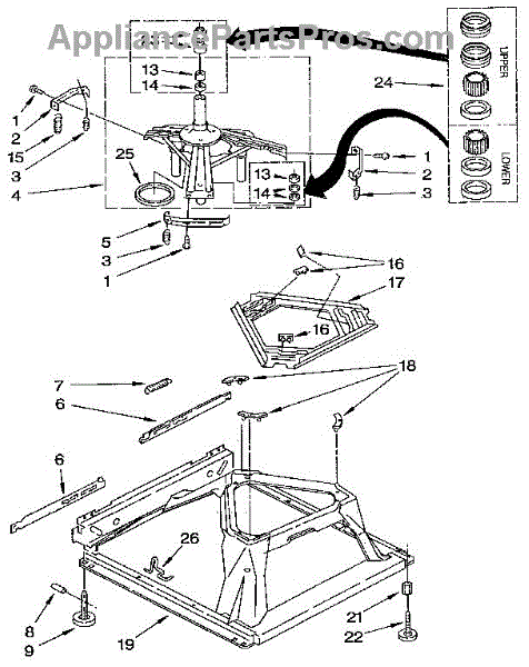 Base for washers. Supports the entire washer assembly and houses internal components. Replace if cracked, warped, or damaged from drops or impacts.