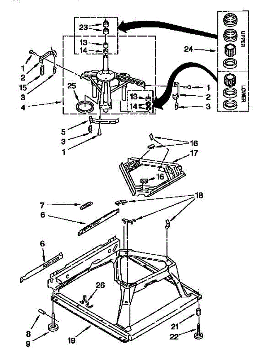 Base for washers. Supports the entire washer assembly and houses internal components. Replace if cracked, warped, or damaged from drops or impacts.